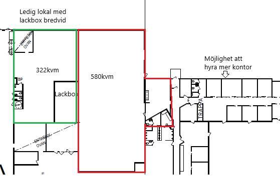 -Lunchrum/kontor om ca 50 kvm, utökningsbart till ca600 kvm kontor + omklädningsrum