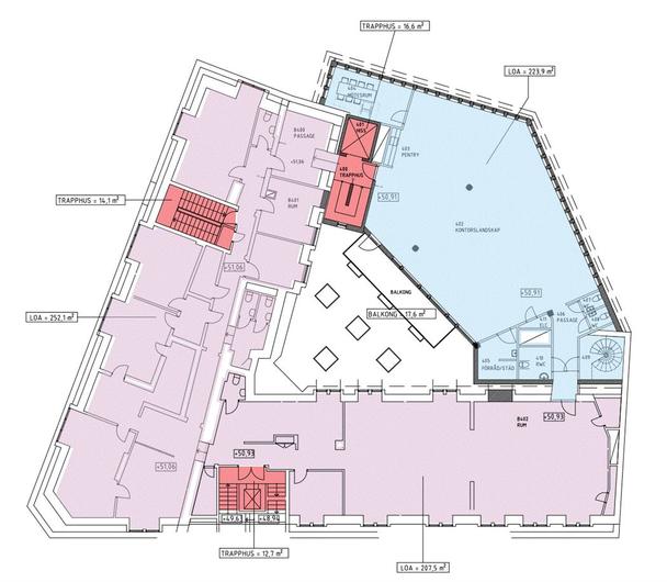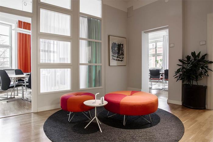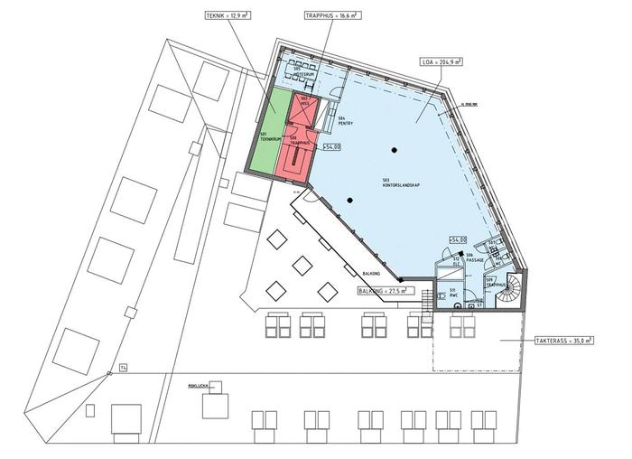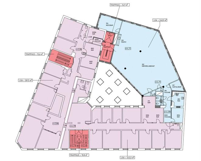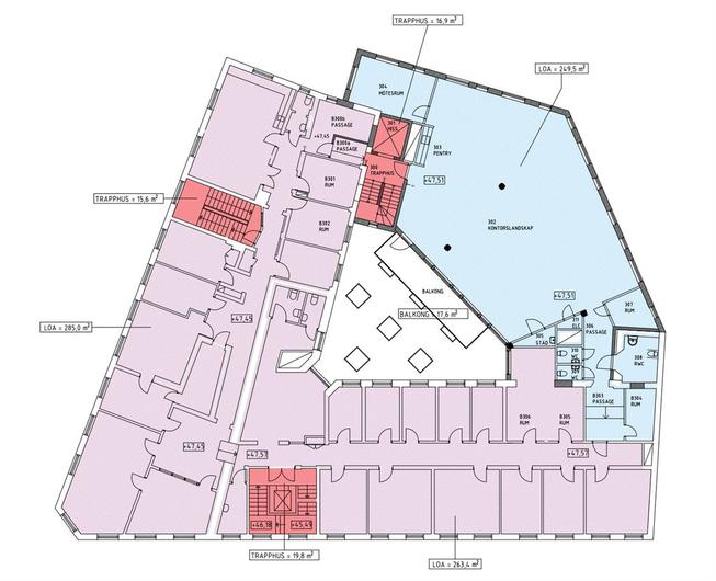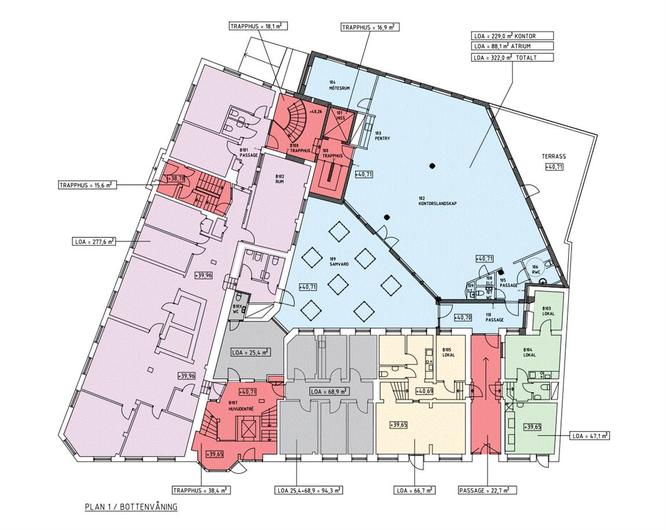 Planlösning:Planlösningen erbjuder möjlighet till öppet landskap, stora grupprum, dubbelrum samt enskilda rum med stora anpassningsmöjligheter.