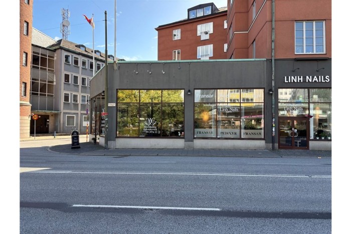 Trevligt lokal som passar bra som butik eller kontor i mycket synligt läge på Drottninggatan. Lokalen har stora skyltfönster runt hela fasaden med härligt ljusinslägg från norr. I lokalen finns toalett samt pentry och litet bakutrymme som kan användas som mindre lager. Lokalen har mycket bra skyltläge.