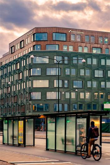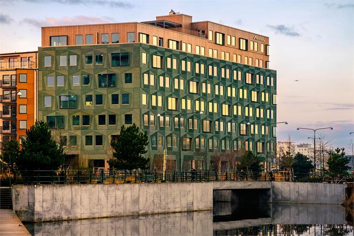 Oas certifieras enligt LEED Platinum och tillsammans med flera andra klimatsmarta lösningar ger detta byggnaden ett riktigt lågt klimatavtryck. Cykelhotellet ligger på entréplan med dusch, omklädningsrum och skåp samt verktyg för cykelunderhåll. Här kan du boka lånecyklar eller varför inte husets egna kajak!
