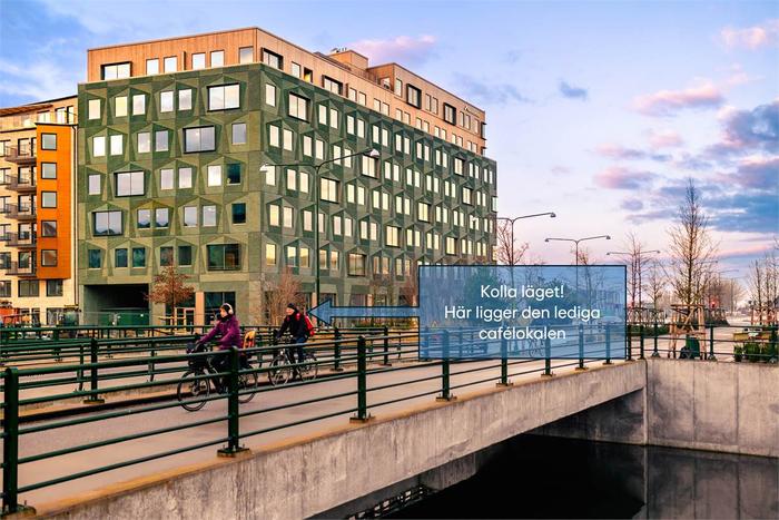 I entréplan finns det en ledig lokal för café och butik. Upptagningsområdet för café och butik är flera bostadhus, kontorshus och en gymnasieskola.