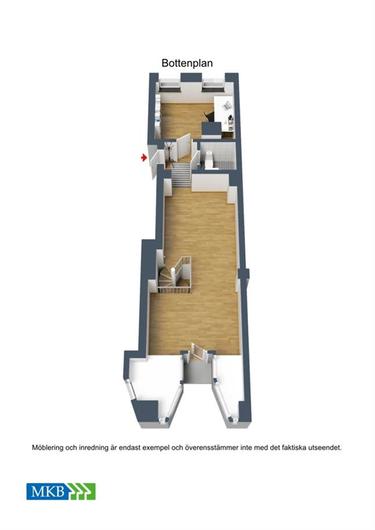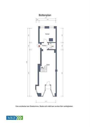Butikslokalen består av två rum, samt wc/toalett på entréplan. I källarplanet finns ett rymligt lagerutrymme som kompletterar lokalen på ett praktiskt sätt.