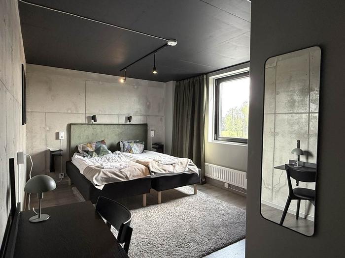 3 våningar: aktivitetsytor i markplan, hotellrum på mellan och övre plan