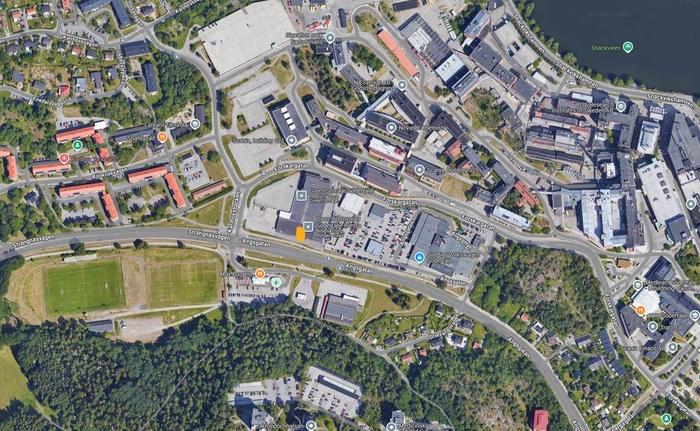 Lokalen ligger strategiskt placerad i ett väletablerat handels- och fordonsområde inorra Södertälje.