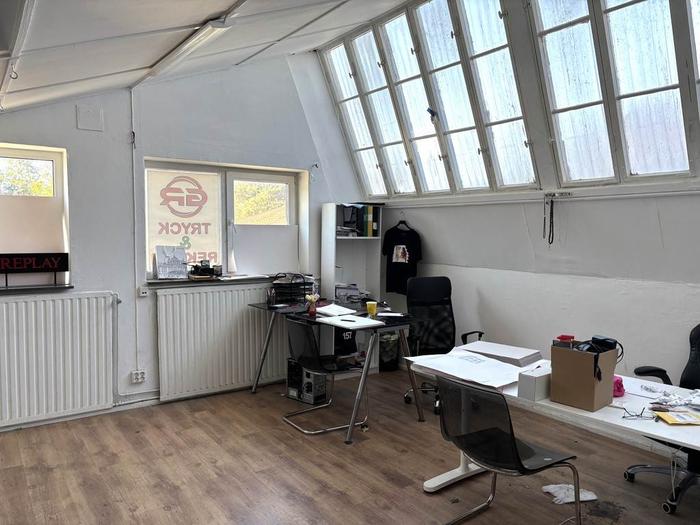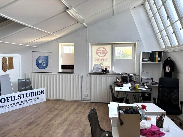 Nu har du möjlighet att hyra en mycket trevlig kontorslokal i populära Viksängen. Lokalen ligger en trappa upp i byggnaden och mäter ca 170 kvm till ytan. Ser man till original planritningen så fördelas denna yta över 5 rok som idag är ändrad till 8 rok. Byggnaden är en av Södertäljes klassiska verkstadsbyggnader med snedställda takfönster som gör lokalen unik. Det finns ett mindre kök/pentry och 2 wc. Utvändigt så finns det gott om parkeringsmöjligheter.