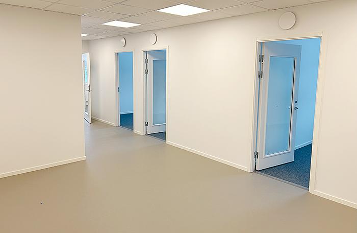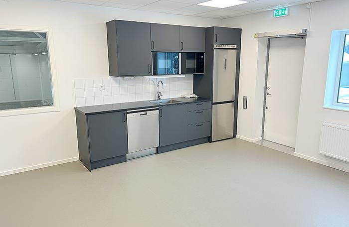 På plan 2 hittar ni omklädningsrum, kontor, konferensrum samt pausrum. Här finns förberett för ytterliggare ett omklädningsrum om så önskas.