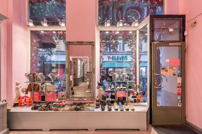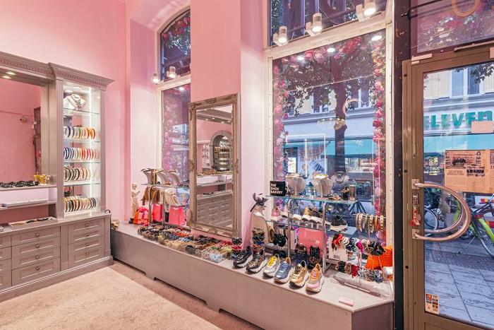 Lokalen är belägen på en gågata som präglas av ett mycket högt utbud av varierande butiker med ett konstant flöde av besökare.