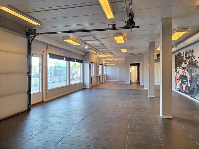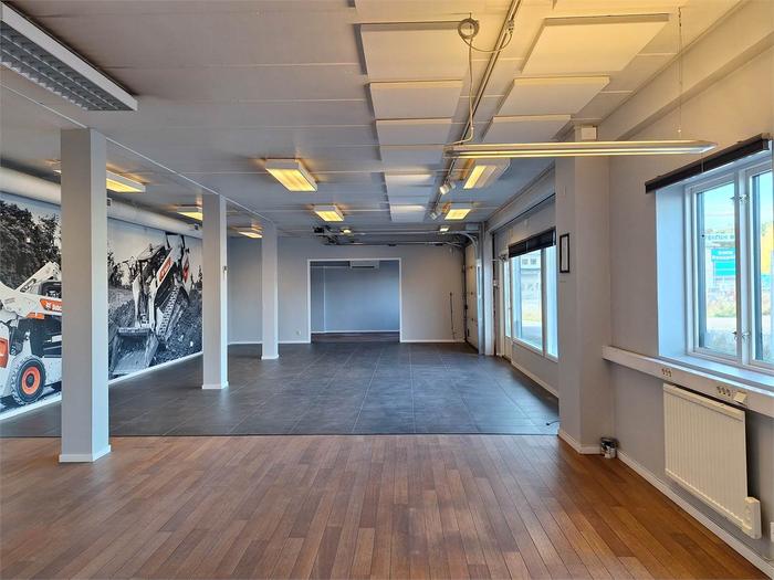 Större öppen yta med plats för utställning, kontor samt mötesrum för kunder med fin pentrydel.