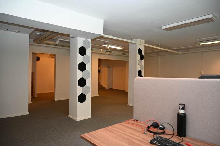 Lokalen har en öppen planlösning med plats för många arbetsplatser samt ett konferensrum för ca 4-6 personer. I lokalen finns även pentry, WC med dusch samt ett litet serverrum.