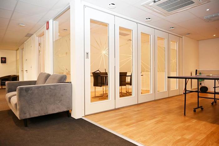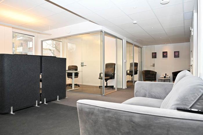 Lokalen har en egen entré direkt från gatan. Öppen planlösning med flera kontors-/mötesrum i varierande storlekar. I lokalen finns ett pentry samt 2 st WC.