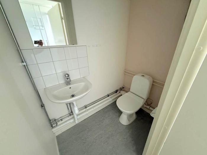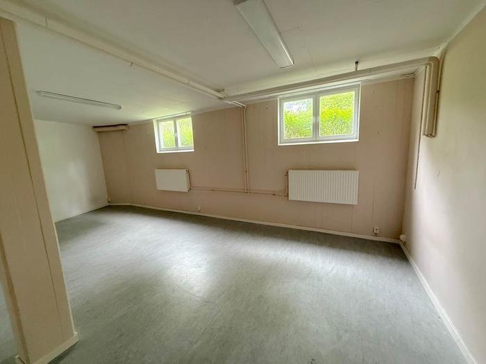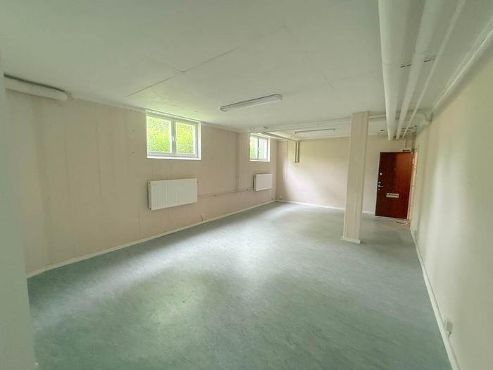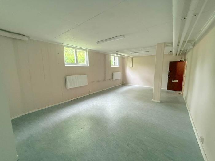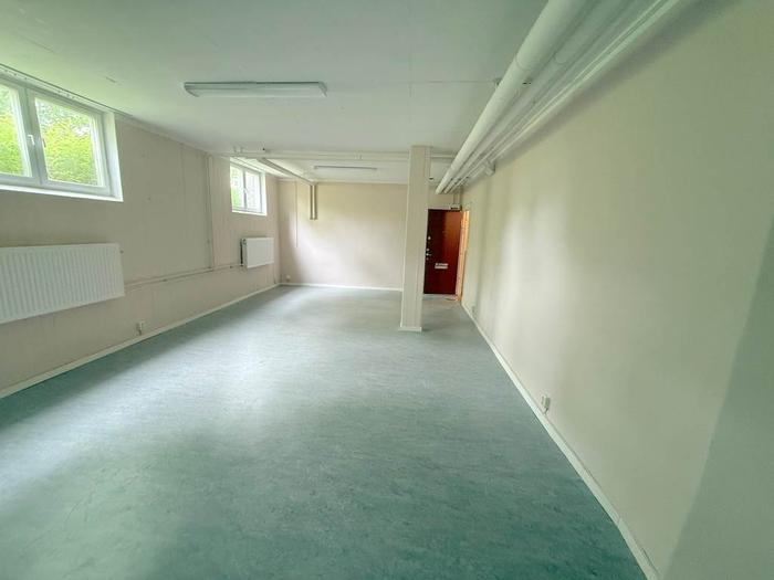 Lokalen är belägen en trappa ned i ett bostadshus men upplevs ändå ljus tack vare fönster mot gården som släpper in gott om dagsljus. Den öppna planlösningen skapar en flexibel och trivsam arbetsmiljö. Lokalen är utrustad med ett enklare kök samt wc med dusch.