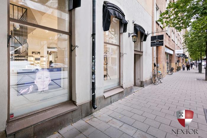 Lokalen har stora skyltfönster som ger utmärkt exponering och ytterligare möjlighet att skylta från trapphuset, vilket gör att verksamheten syns även från Drottninggatan. Lokalen omfattar cirka 107 kvm och är påkostad och renoverad i mycket fint skick.