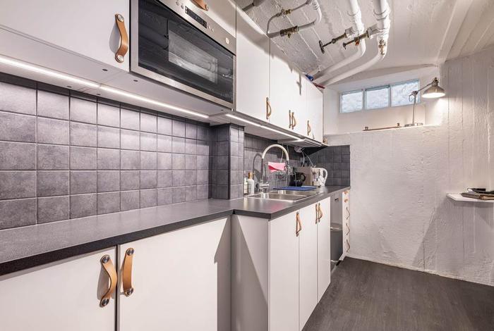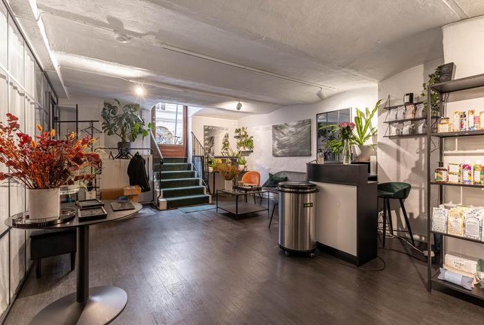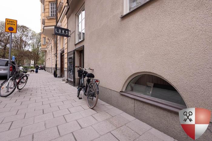 Lokalen nås via en egen ingång direkt från gatan, och är belägen en halv trappa ned. Här består lokalen utav en öppen lounge/väntyta, samt separata rum i varierande storlekar. Vissa av rummen har glasväggar som släpper in dagsljus även till rummen. I lokalen finns dessutom ett välutrustat pentry samt en W/C i ett fint skick. Takhöjden är god, och lokalen nås av dagsljus från fönster både i de främre och bakre delarna utav lokalen.