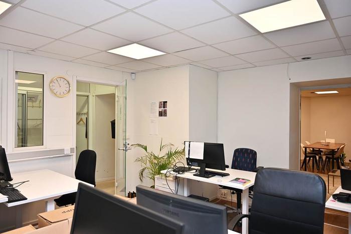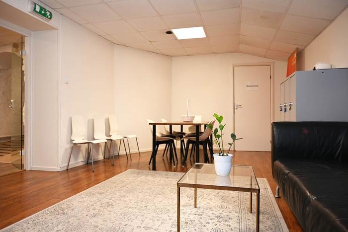 Lokalen ligger 1/2 trappa ned och har två egna entréer från gatan. Blandad planlösning med en ljus del med högbröstade fönster mot gatan samt en del som är belägen under gården utan direkt ljusinsläpp. I lokalen finns tre st WC, två st duschar samt två st pentryn och förrådsmöjligheter. Lokalen kan delas ner till ca 300 kvm (främre delen av lokalen), alt så kan man hyra hela lokalen om ca 500 kvm. Bra takhöjd.