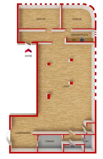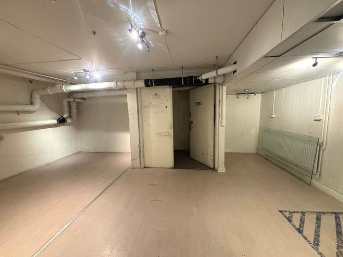 Entré via trapphus eller garagenedfart där man kan lassa och lossa in i lokalen.