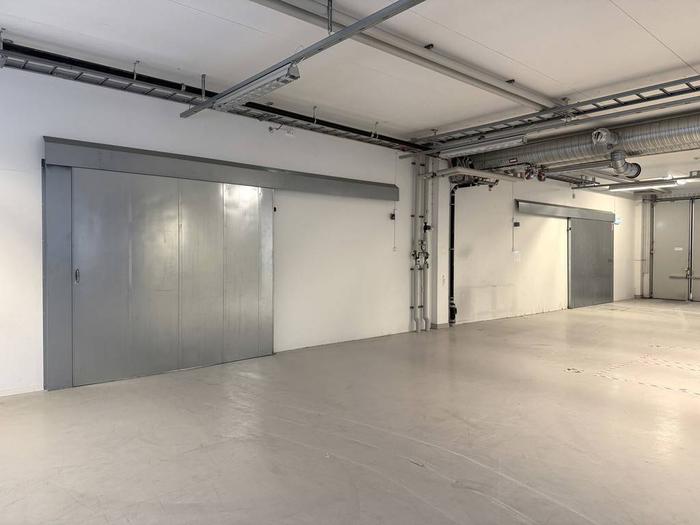 Mellan låg- och höglager finnsgångdörr samt två större branddörrar, vilket möjliggör smidig intern kommunikation och flexibel användning av ytorna.