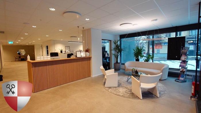 Planlösningen är mycket väl genomtänkt med ett flertal inglasade mötes & kontorsrum, modernt pentry och rymligt badrum.