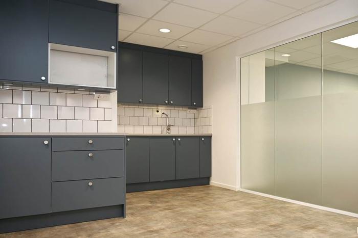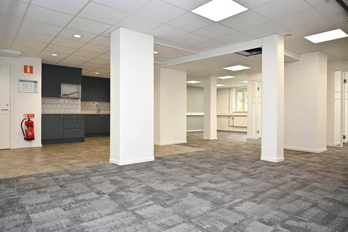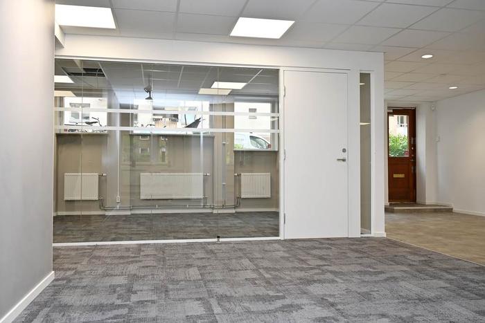 Blandad planlösning med öppen planlösning och fyra rum i varierande storlekar. Lokalen har egen entré från gatan, i anslutning till entrén finns ett modernt pentry och pausarea. Utöver detta finns två st WC i lokalen, varav den ena med dusch.
