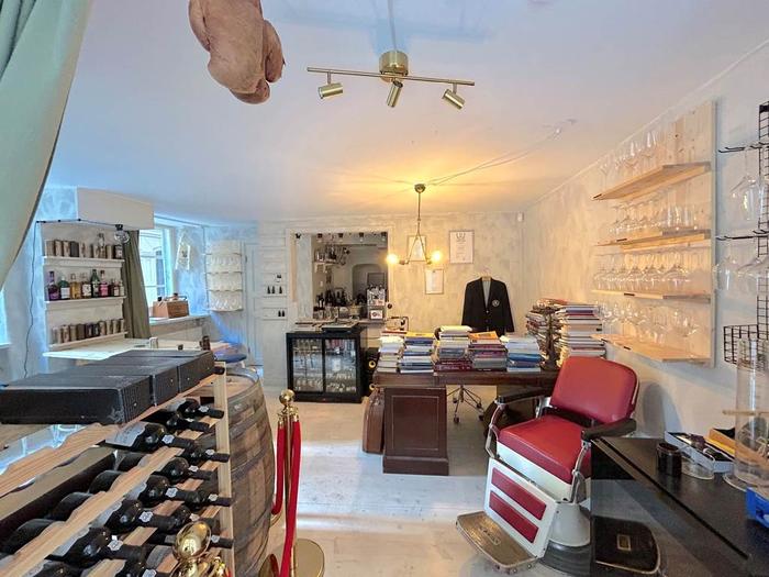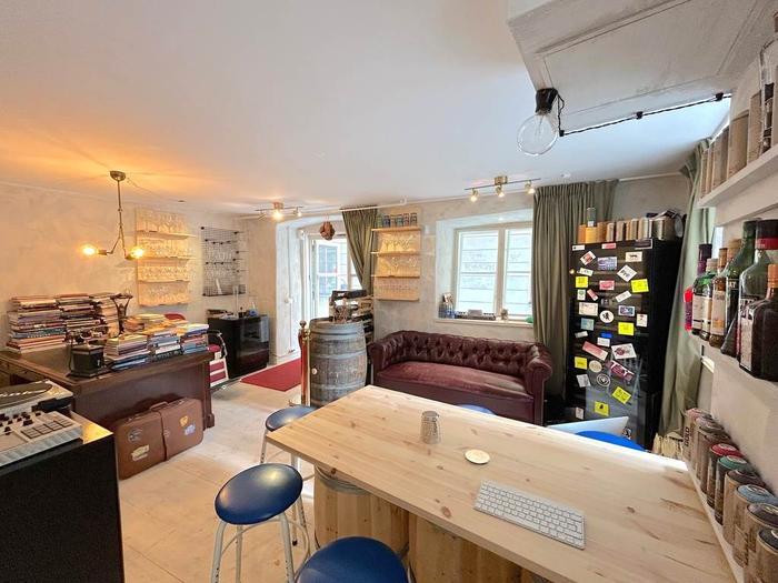 Trots sina 30 kvm känns lokalen betydligt större tack vare hörnläget och de stora fönstren som släpper in generöst med dagsljus. Idag används den som kontor, showroom, popup-butik och provningslokal för vin, vilket visar på dess flexibilitet och potential.