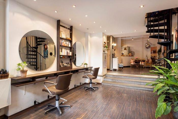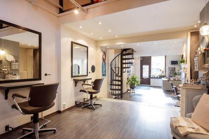 Lokalen är ljus och inbjudande, fördelad på både gatuplan och entresolplan. Frisörsalongen ligger på gatuplan, medan entresolplanet rymmer kontor och pentry. De stora fönstren ger ett härligt ljusinsläpp och skapar en trivsam miljö. Salongen är utrustad med fyra frisörstolar, men har tidigare haft kapacitet för fem frisörer. Här har det bedrivits hårsalong i nästan 100 år, vilket ger lokalen en stark historisk förankring.