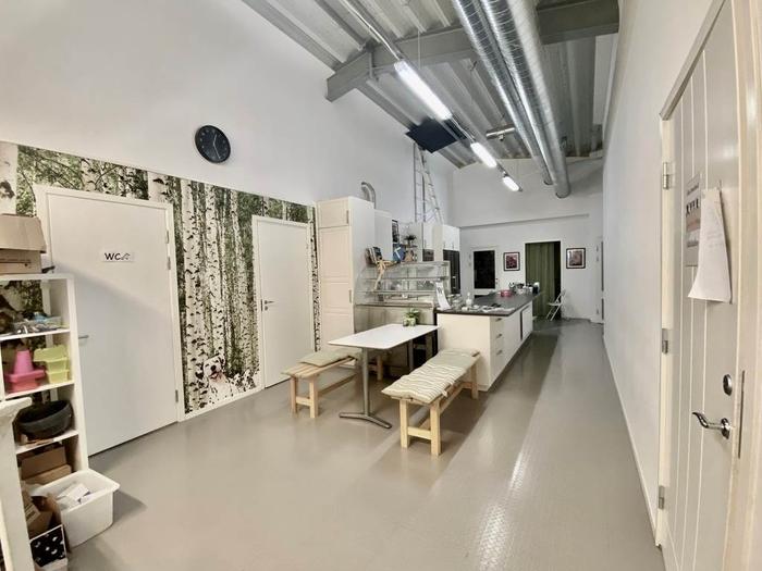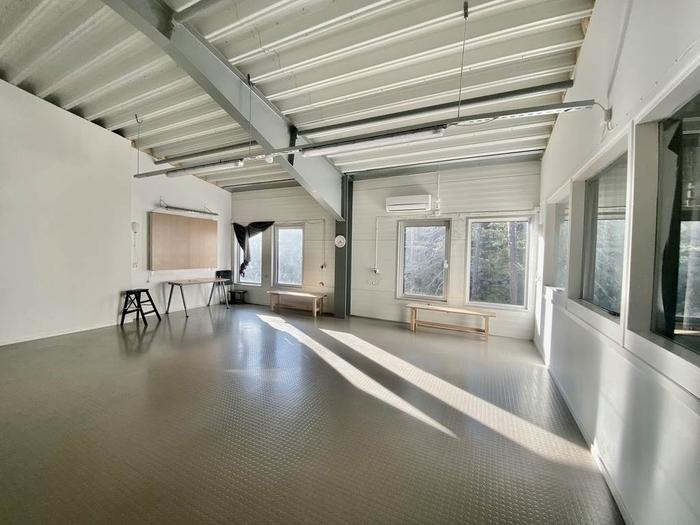 Denna inomhusyta ligger högst upp i fastigheten med ett par mindre rum, ett konferensrum, en stor och ljus öppen yta med ca 4 m takhöjd, fullt utrustat kök och två toaletter. Den stora öppna ytan kan med fördel nyttjas till produktion men kan också anpassas till kontor. Personhiss finns i fastigheten.