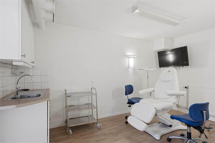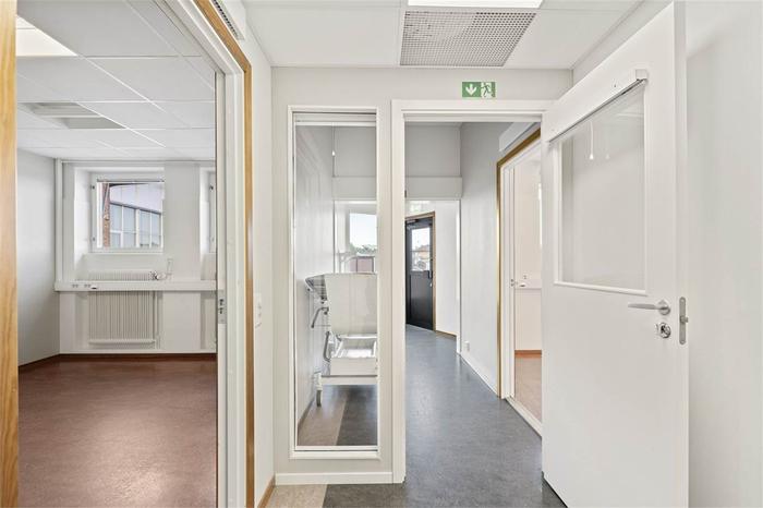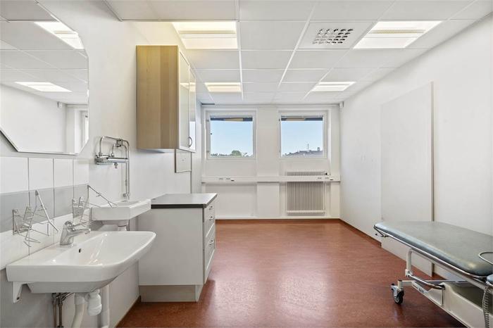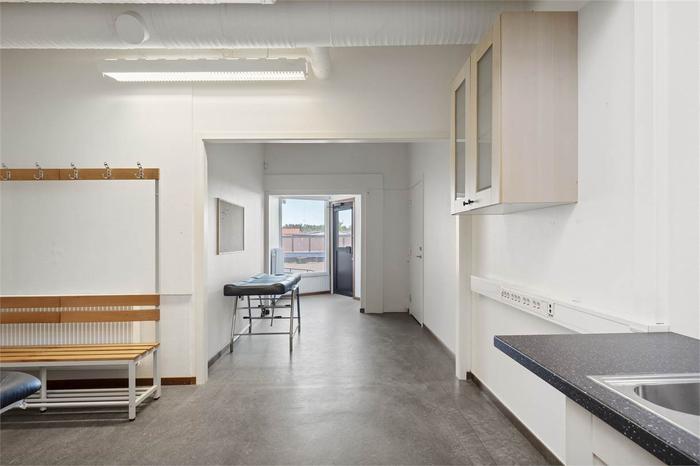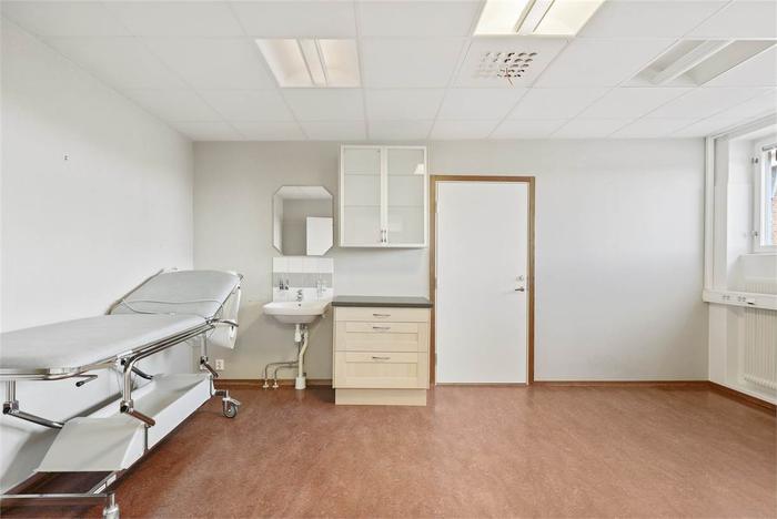 Lokalen om totalt 470 kvm (305 kvm tillgängligt) och har tidigare brukats som läkarpraktik och passar perfekt för den verksamheten men också mycket andra verksamheter som kontor, föreningsliv eller dylikt. Det är idag 15 separata rum, samt personalutrymmen med kök och plats för socialt umgänge. Det finns 4 toaletter och omklädningsrum. Det är fyra entréer vilket möjliggör en uppdelning av lokalerna. Den minsta enheten utgör då ca 95 kvm. Idag finns en hyresgäst i lokalerna som hyr ca 165 kvm, se bifogad ritning.