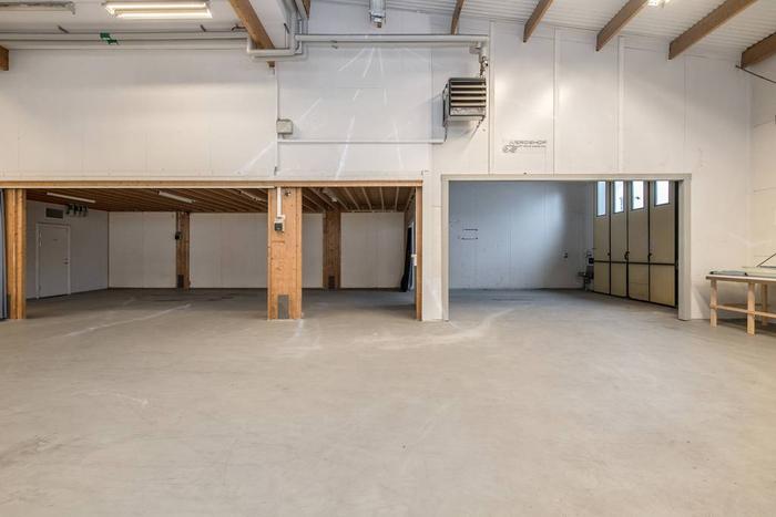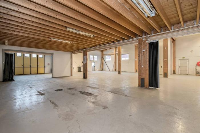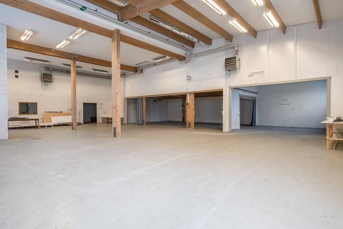 Lagerdelen präglas av generös takhöjd som skapar god rymd och flexibilitet för pallställ, maskiner eller större varuflöden. Den höga takhöjden ger inte bara effektiv volymanvändning utan också möjlighet att anpassa lokalen efter verksamhetens behov.