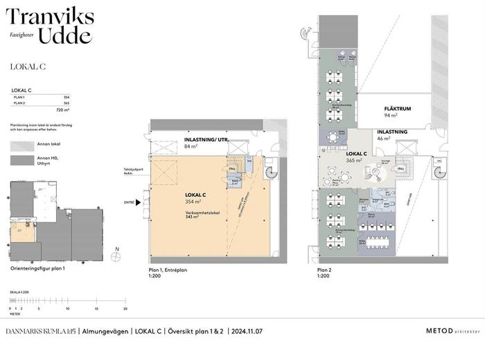 Anpassningsbara ytor om total 719 kvm med 354 kvm på bottenplanet och 365 kvm på plan 2. Det är stora glaspartier för bästa skyltläge och generös takhöjd och mycket modern teknisk standard. Ytorna kan skräddarsys tillsammans med nya hyresgästen.