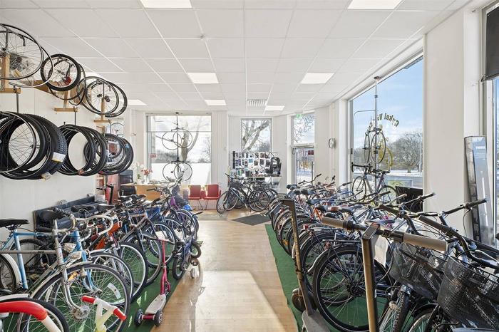 Cykelbutik med hörnläge längs vältrafikerade Råbyvägen.