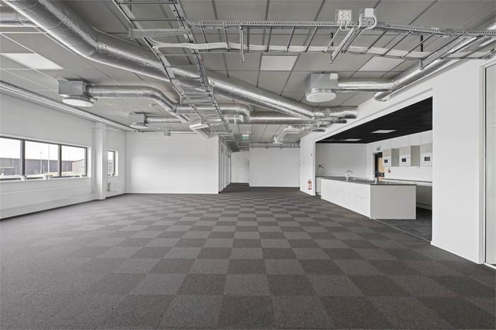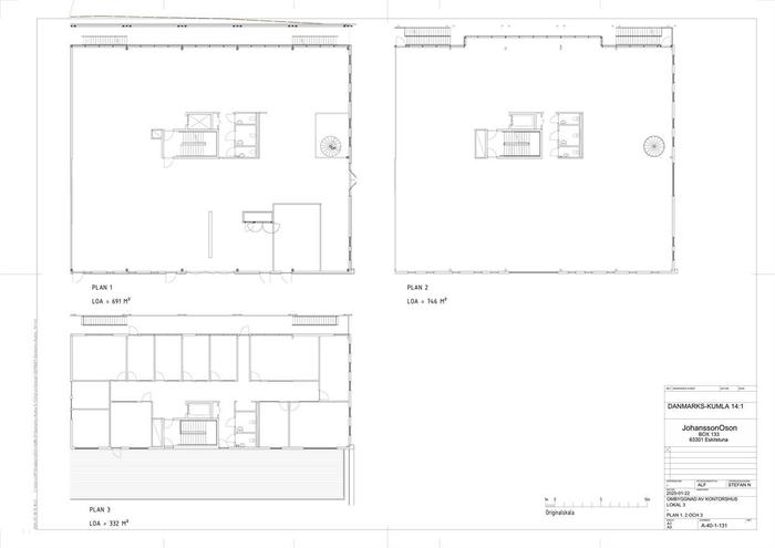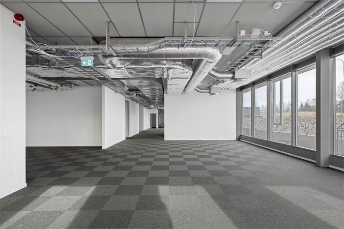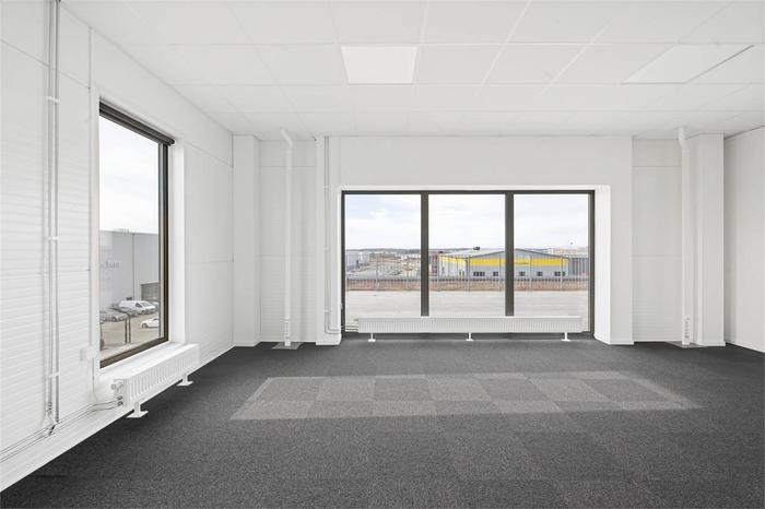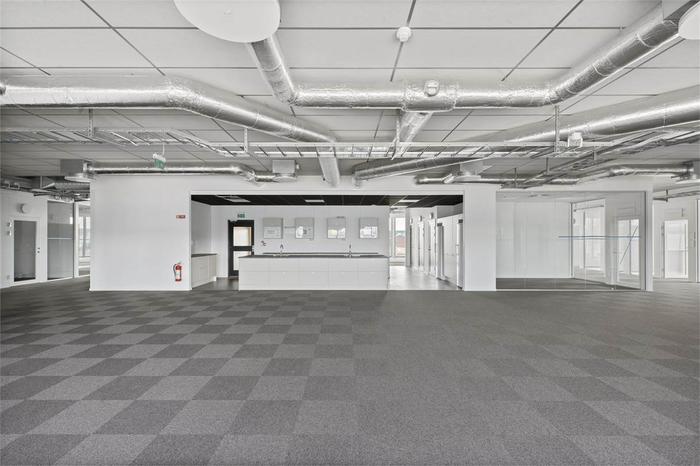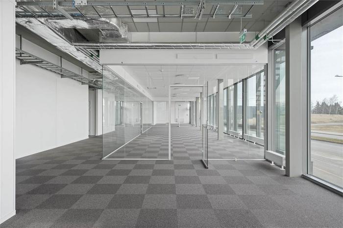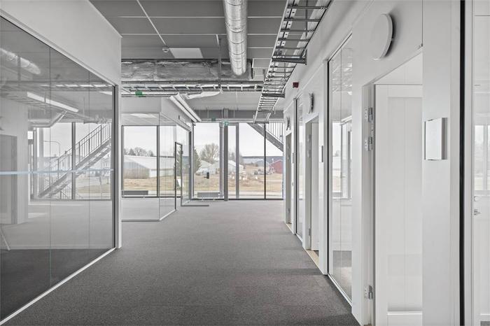 Plan 2 erbjuder 746 kvm ljusa och stilrena kontorsytor med en modern och öppen känsla med stora glaspartier som ger ett rikligt ljus i hela lokalen och skapar en öppen känsla trots avgränsande ytor. Det är även stora fönster längs fasaden som ger ytterligare ljus och luftig känsla. Toppmodernt och en mycket trivsam miljö. Här finns också öppna kontorsytor, konferensrum, flera samtalsrum och även flera toaletter. Det största konferensrummet har en avgränsning helt i glas med fönster ut mot den trafikerade vägen. Köket på detta plan är imponerande och mycket välutrustat för en stor personalstyrka att samlas kring. Här finns en köksö, två diskmaskiner, två diskhoar med blandare, fyra mikrovågsugnar och gott om förvaring, vilket gör det till en perfekt samlingsplats för både luncher och fikapauser. Lokalen har genomgående moderna ytskikt, där textilmattor och synliga installationer i taket förstärker den generösa takhöjden och ger en industriell men stilren karaktär.