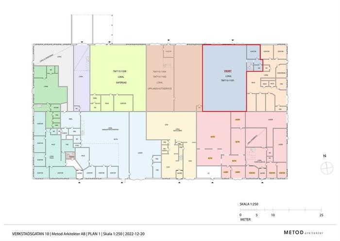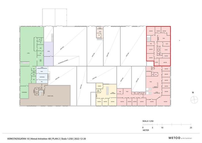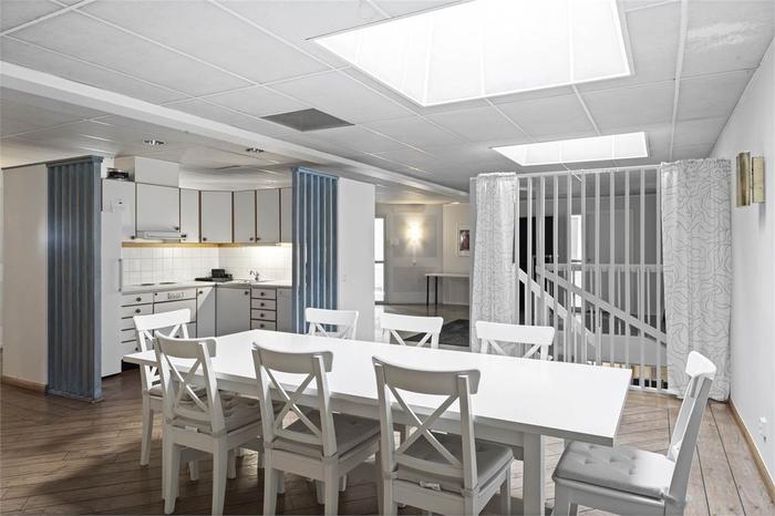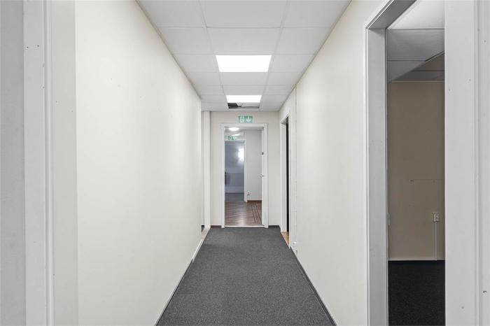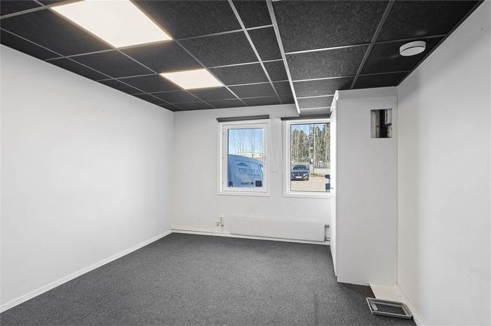 Kontor med en rumsindelad planlösning med rum i varierad storlek. Mycket bra personalutrymmen med lunchrum med pentry, omklädningsrum med dusch och två toaletter.