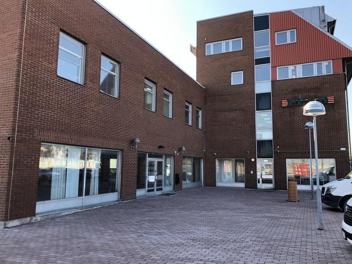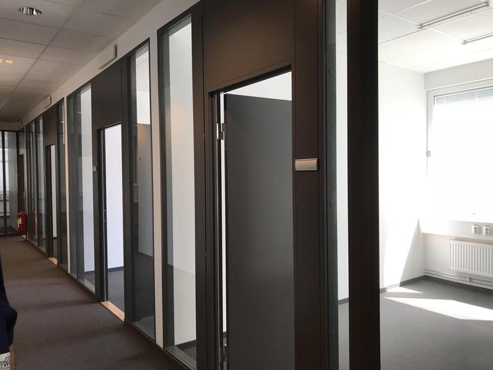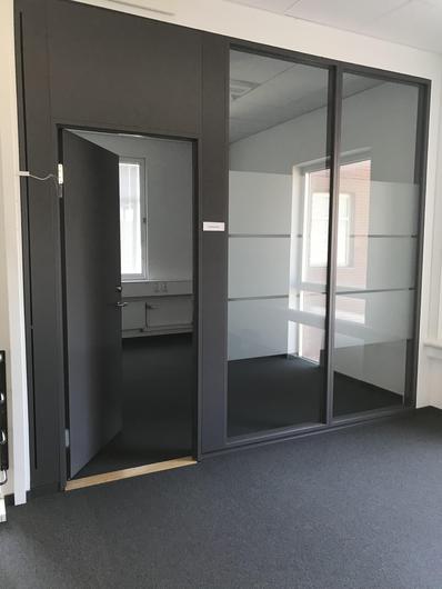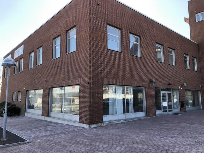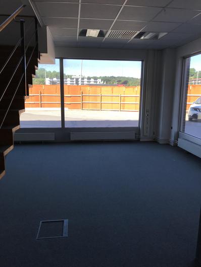 Kontor med showroom på bottenvåning och renoverat kontor i både öppet landskap och rum på våning 1 trp. Fri parkering, mekanisk vent/kyla. Bra skyltläge vid E6.