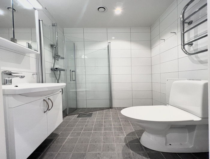En fin och trivsam lägenhet med två rum och kök på 58 kvm som ligger på bottenvåningen i ett mindre hus. Lägenheten ligger på Falegatan 9B i Falköping. Det är en fin lägenhet som är helrenoverad med nytt kök med bl a häll med induktion och diskmaskin, vitvaror och fina materialval på köket och bänkskiva. Badrummet är renoverat med klinkade golv med golvvärme och helkaklade väggar. Det finns handdukstork Golven är renoverad och även alla ytskikt. Lägenheten har balkong. Hyran är 7 164 kr/mån (varmhyra).