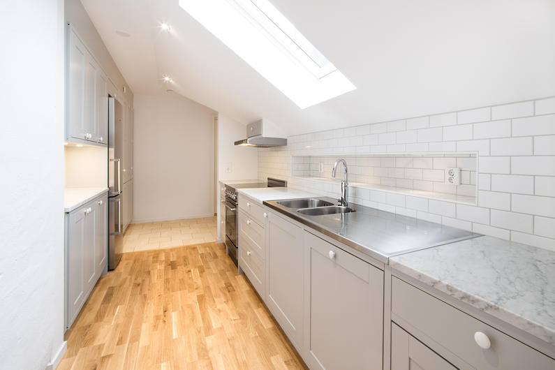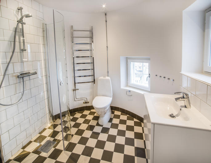 Trevlig liten lägenhet för dig som vill ha hög standard i centralt läge. Våningen är belägen högst upp i fastigheten med en fantastisk utsikt över staden. Lägenheten är genomgående utrustad med fina materialval. Som bänkskivor i Careramarmor och badrumsgolv i kalksten.