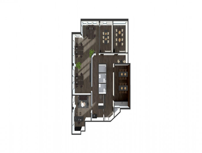 Vi har i samarbete med Nornorm tagit fram ett möbleringsförslag, finns bifogat i pdf, med en 3D modell över möbler och lokal. Nornorm arbetar med cirkulär användning av kontorsmöbler.