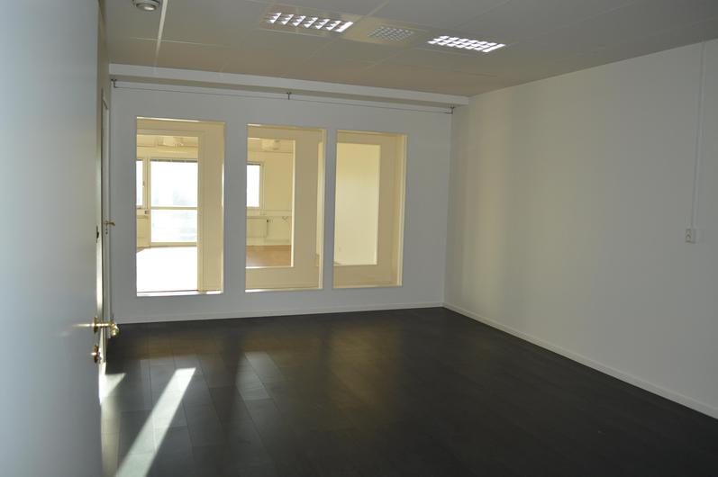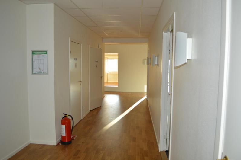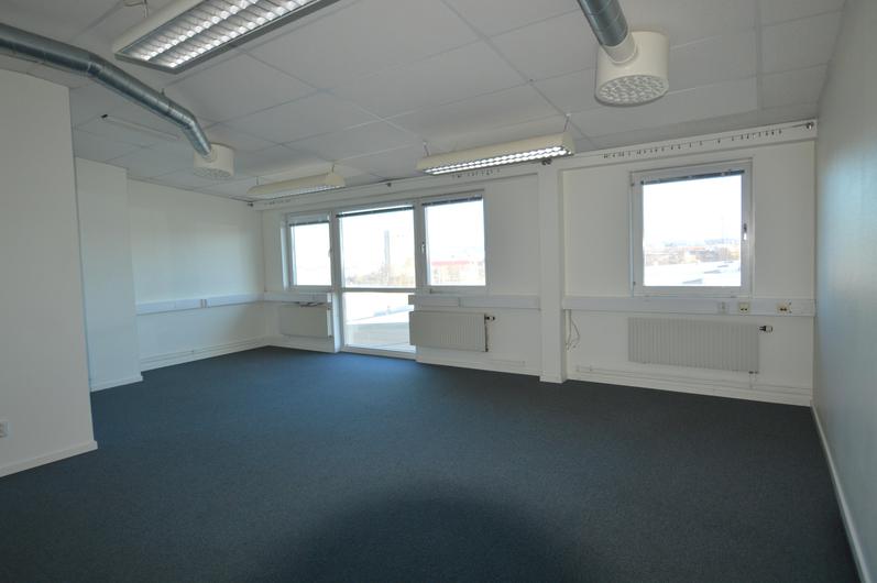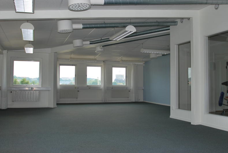 Planlösning med större rum för flertal medarbetare i kombination med säljchefskontor samt samtalsrum. Större fikarum med goda faciliteter. Två toaletter, en med dusch.