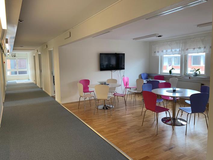 Ljus och öppen lokal med kontorsrum av hög standard.