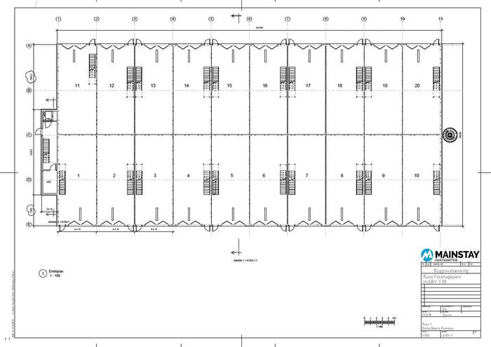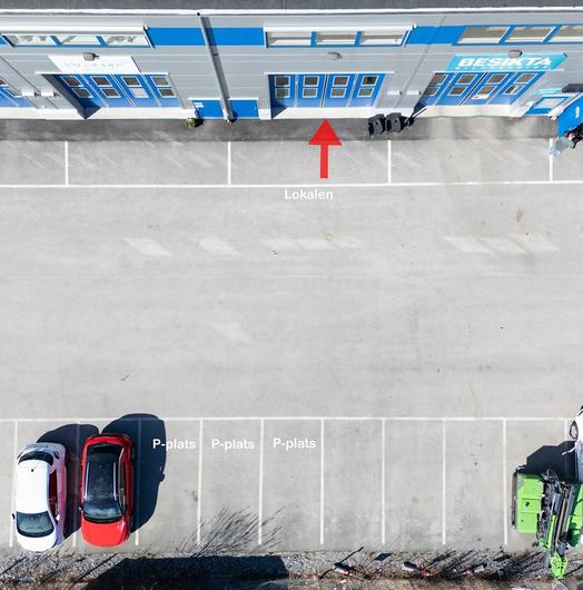 Plan 1: Lager/verkstad ca 90 m² i markplan med inkörsport, separat gångdörr. Lokalen har ett betonggolv. Flexibel yta som enkelt kan delas av eller hyras ut delvis till samarbetspartners.
