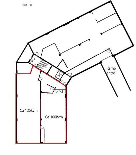 Planlösning:250 kvm i öppen planlösning med pelarkonstruktion. Lokalen kan delas i två enligt följanade: