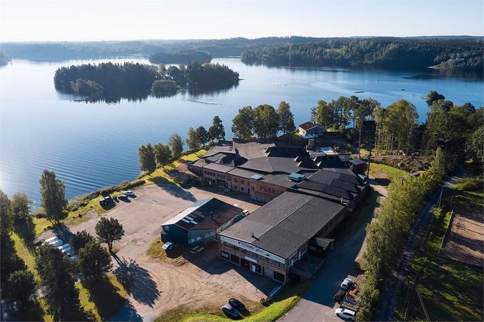 Fastigheten ligger precis i kanten av Viaredsjön med egen brygga
