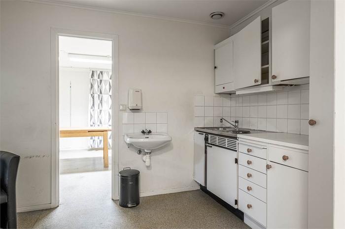 Lokalen är uppdelad i lager och kontor med Pentry.