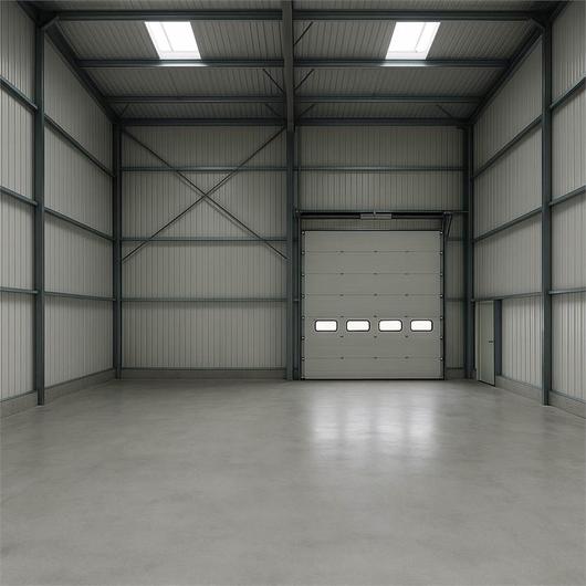 Planlösning:Moderna industrilokaler med 6.5 m takhöjd, egen port, luftvärmepump och trefas. Passar lager, produktion och lätt industri.