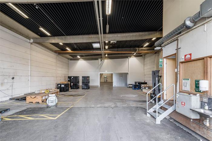 Lokalens planlösning består avlagerytor i markplansamt ettmindre kontor och pentry/WCpå plan två.Två markportarvetter direkt mot E6, vilket ger lokalen en oslagbar exponeringsmöjlighet. Takhöjden varierar mellan6,5 och 7 meter, vilket skapar goda förutsättningar för höglagring eller yteffektiv verksamhet.