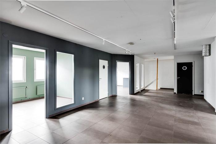 Kontorsdelen har en egen entré, med både trappa och hiss för enkel tillgänglighet. Här möts ni av en flexibel planlösning med en stor öppen yta, perfekt att anpassa efter verksamhetens behov. Därtill finns flera kontorsrum i varierande storlekar, förråd och ett flertal WC.