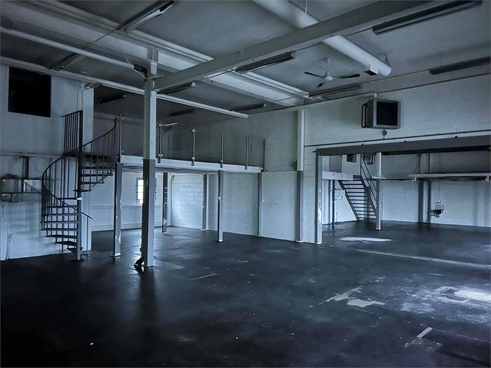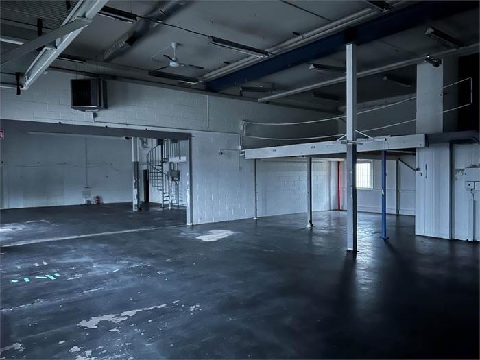 Utöver detta finns en generös entresol som skapar extra yta i lager- och verkstadsdelen. Längst in i lokalen leder en trappa vidare till kontorsplanet.