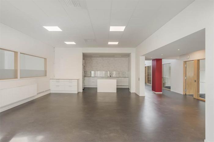 Stor industrifastighet på bästa läge i Halmstad med en ledig kombilokal om 636 kvm på markplan. Lagret om 213 kvm erbjuder smidigt in- och utlastning via ett gemensamt lasthus och fyra meter i takhöjd. Kontorsdelen om 423 kvm inrymmer separata kontorsrum i olika storlekar, mötesrum, matsal med kök och gott om yta för sittplatser samt WC.