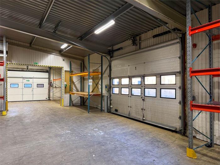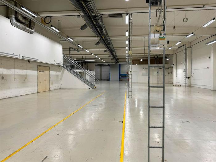 Lokalen har en generös takhöjd, vilket passar för lagerhållning och olika typer av produktionsverksamheter. Lokalen är utrustad med fyra installerade hissautomater av typen Megamat, vilket gör det möjligt att lagra och hantera material på ett effektivt och utrymmesbesparande sätt. Med flera portar skapas goda möjligheter för effektiva in- och utlastningar. Dessutom finns en rymlig uppställningsyta som gör fastigheten ännu mer praktisk för logistikintensiva verksamheter.