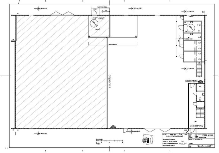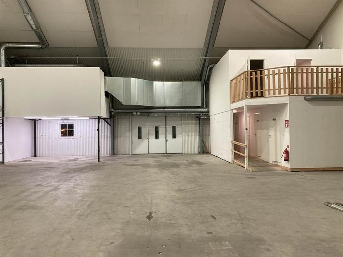Lagerytan om 400 kvm har en öppen yta med generös takhöjd, totalt 11 meter till takfot, och i dagsläget är lokalen inredd med en dubbla portar och en entrédörr. I lokalen finns ett entresol som kan nyttjas som kontor eller förråd. I markplan finns även dubbla omklädningsrum, wc samt rwc. Lokalen är modernt utrustad med golvvärme, FTX-ventilation, akustiktak samt LED-belysning. Ytan är stor och öppen och går att dela av om behovet finns. Möjlighet finns att hyra ett kontor intill om ca 200 kvm eller separata kontorsrum.