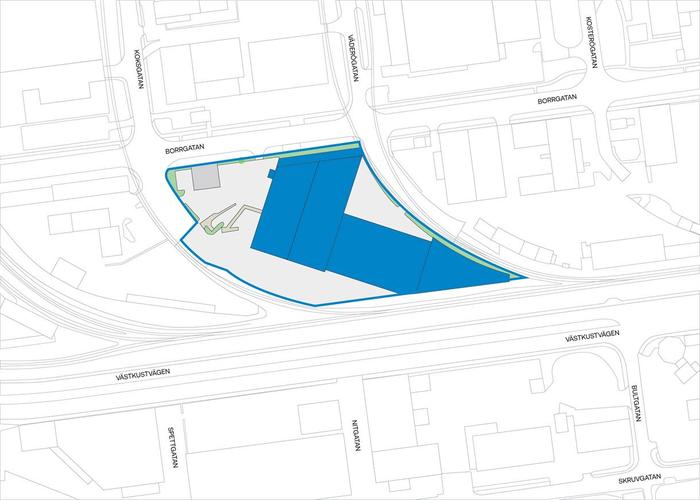 Vägbeskrivning:Direkt anslutning till Västkustvägen som leder till Inre Ringvägen, E6/E20 och E22