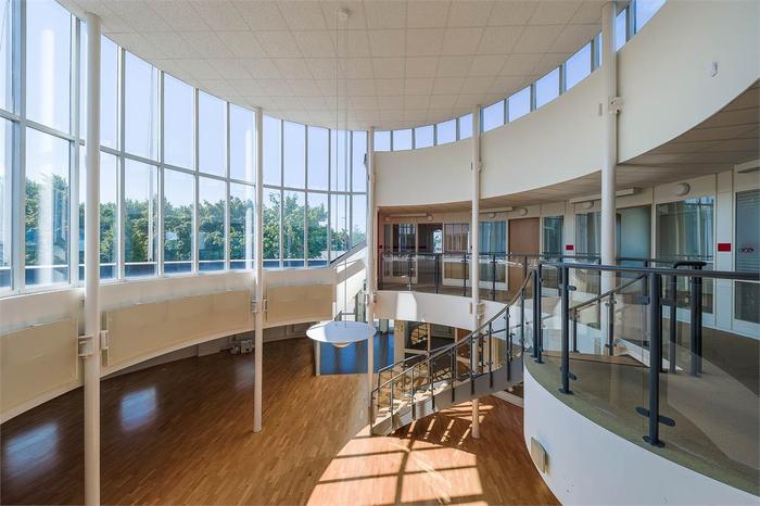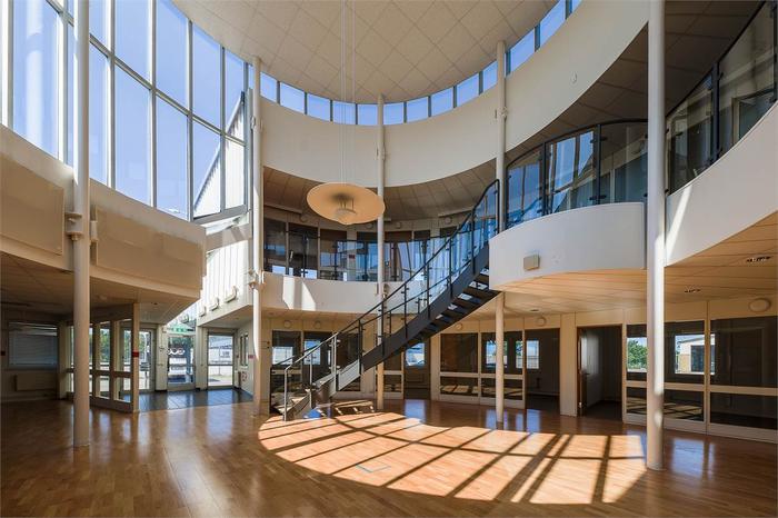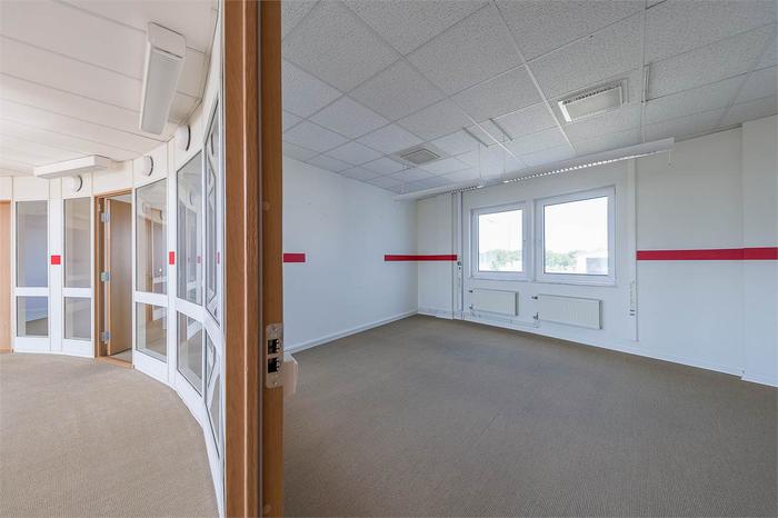 Unika arkitektoniska inslag somrunda väggar, glasväggar och en glaskub-liknande entréger lokalen en representativ och trivsam atmosfär. Lokalen är försedd med3-fas el och LED-belysningsamt fri parkering i direkt anslutning till fastigheten.